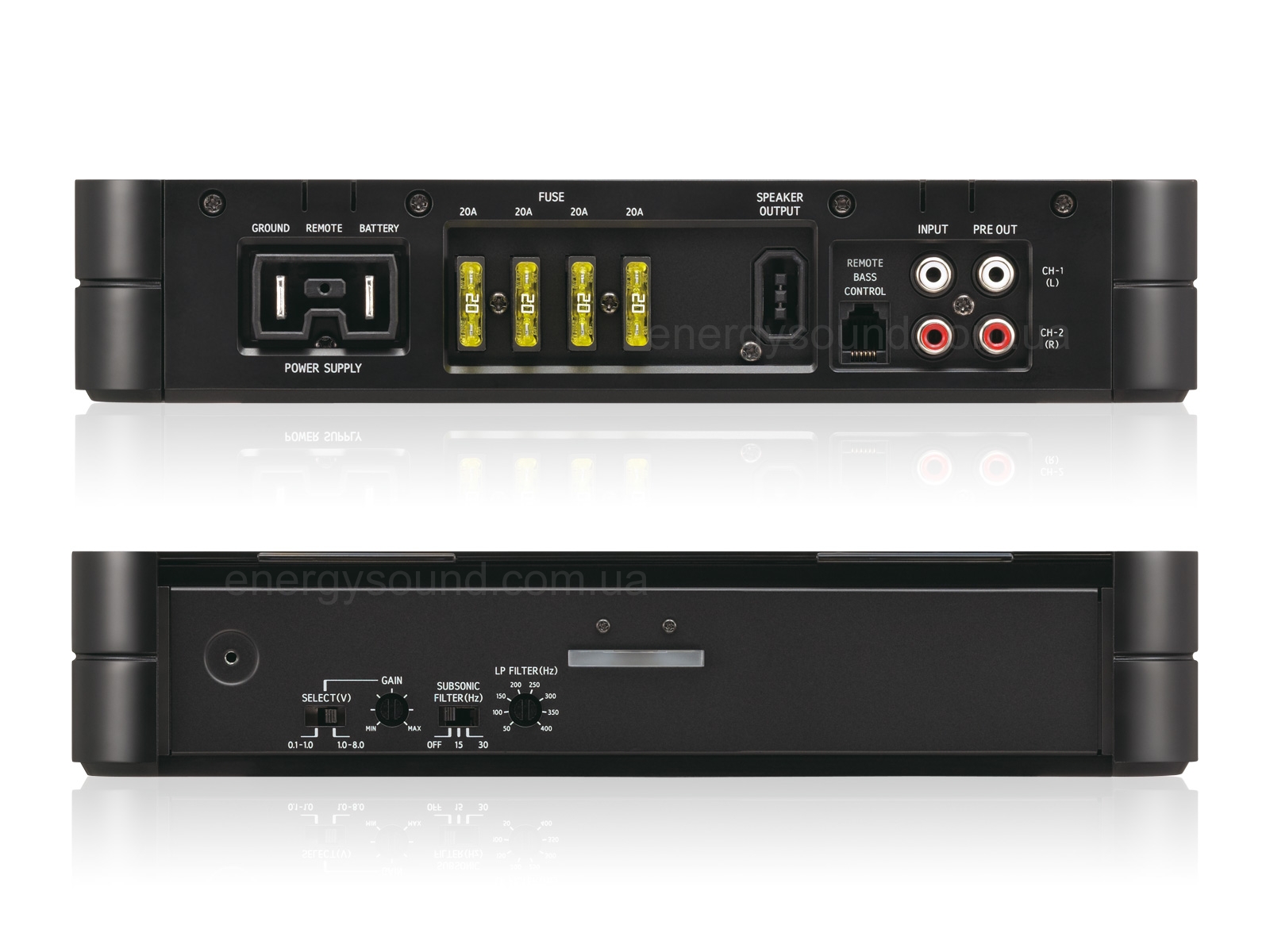 - Кроссовер: регулируемый, 50-400 Гц (-24 дБ/окт ), только ФНЧ, 1/2 кан.