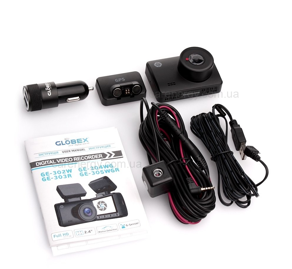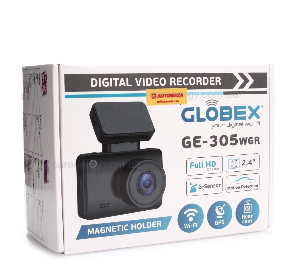 РАСШИРЕНИЕ FULL HD / HD. Видеорегистратор GLOBEX GE-303R снимает видео с разрешением FullHD (1920 * 1080, скорость 30 кадров в секунду, формат - MOV). Камера заднего вида фиксирует видео в качестве HD (1280*720, скорость 30fps) и имеет разметку для парковки.